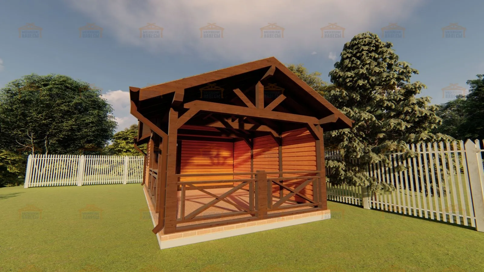 | Стойки (столбы навеса) | Массив бруса сечением 140×140 мм Примечание: возможно естественное растрескивание, которое никак не влияет на надежность. Во избежание этого необходимо использовать клееный брус |