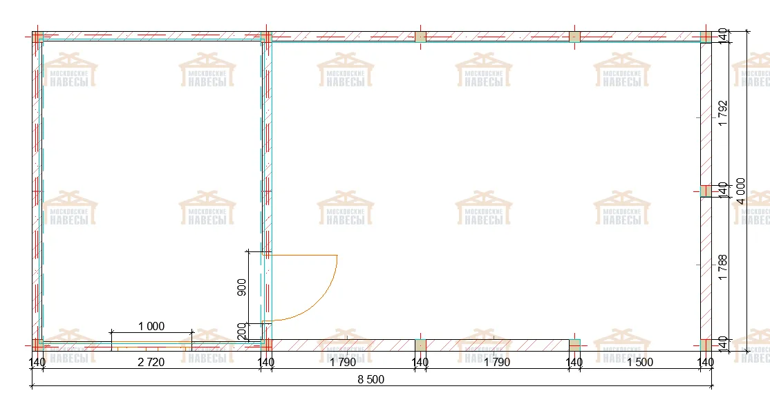 Размер: 4×8.5 м Площадь (по стойкам): 34 м² Срок производства: 45 день Срок монтажа: 12 дня