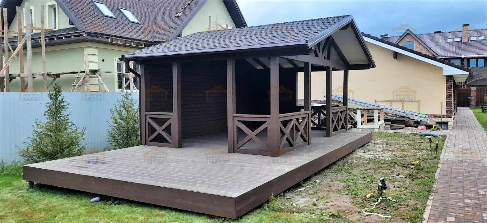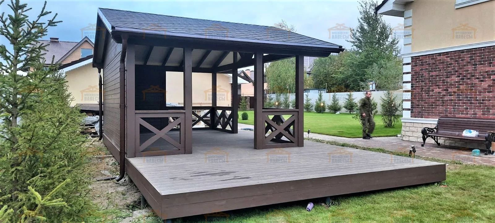 | Стойки (столбы навеса) | Массив бруса сечением 140×140 мм Примечание: возможно естественное растрескивание, которое никак не влияет на надежность. Во избежание этого необходимо использовать клееный брус |