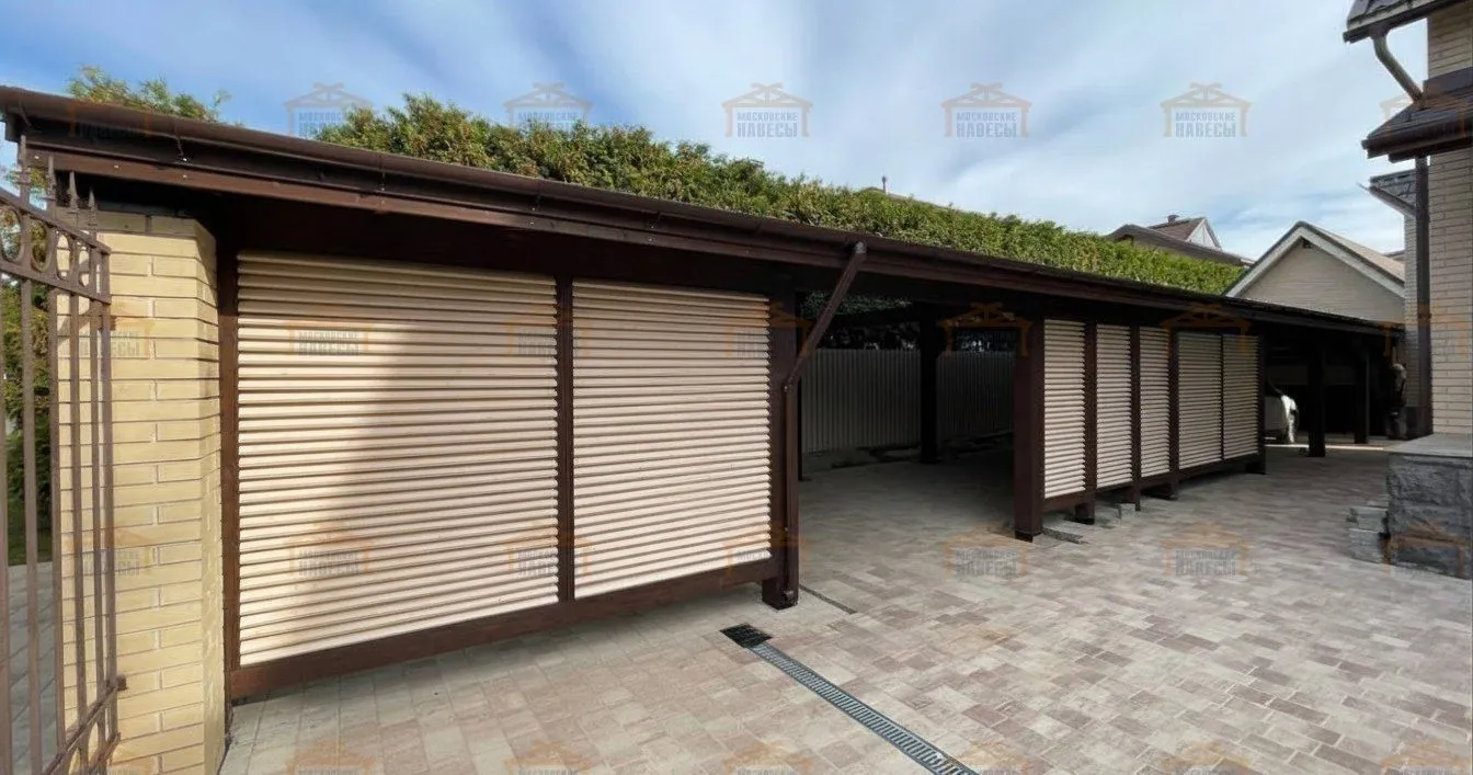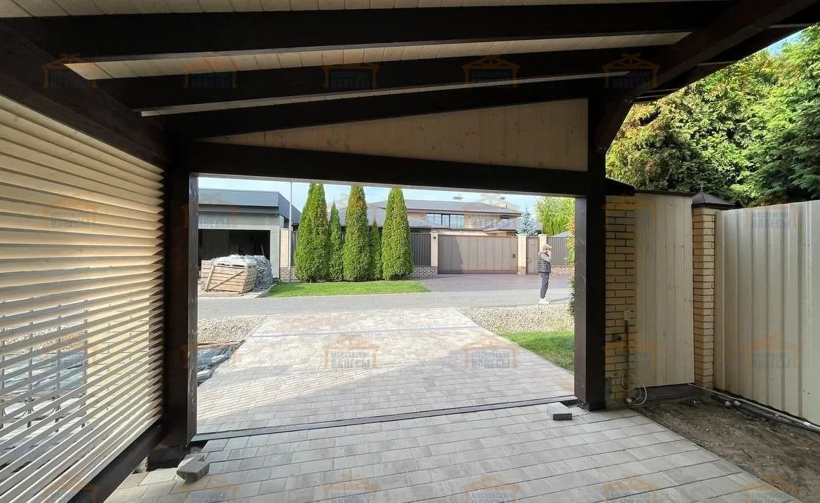 | Стойки (столбы навеса) | Массив бруса сечением 190×190 мм Примечание: возможно естественное растрескивание, которое никак не влияет на надежность. Во избежание этого необходимо использовать клееный брус |