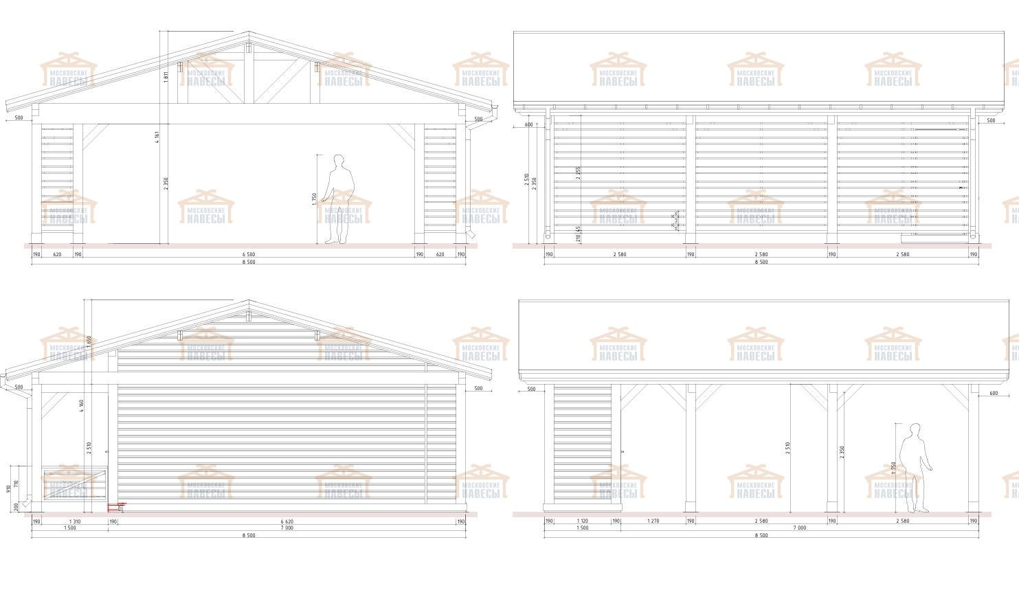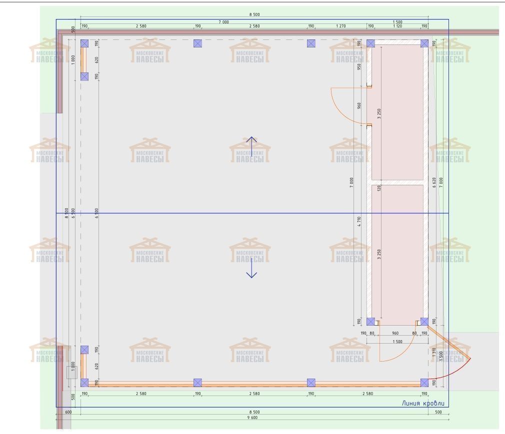 Размер: 8.5×8.5 м Площадь (по стойкам): 72 м² Срок производства: 55 день Срок монтажа: 14 дня