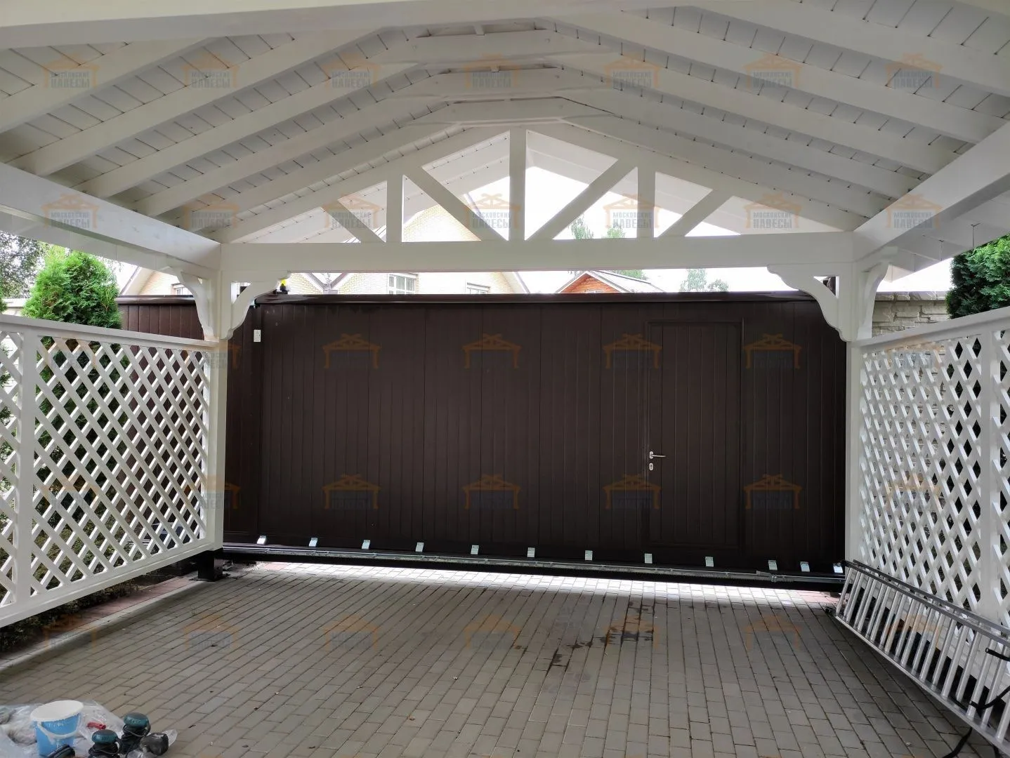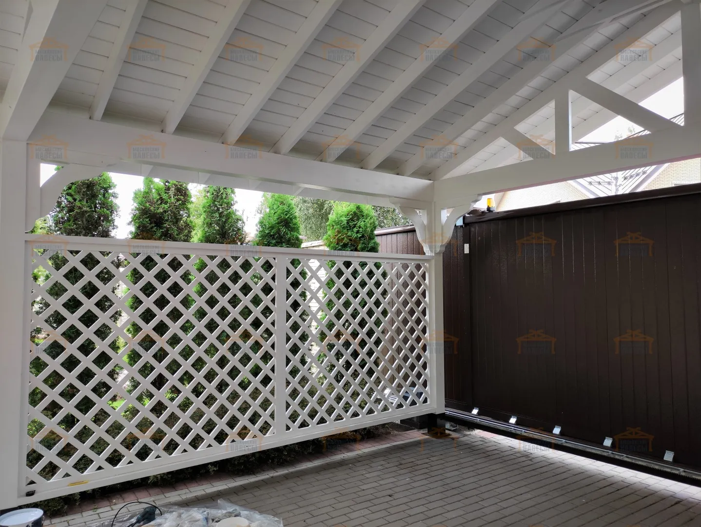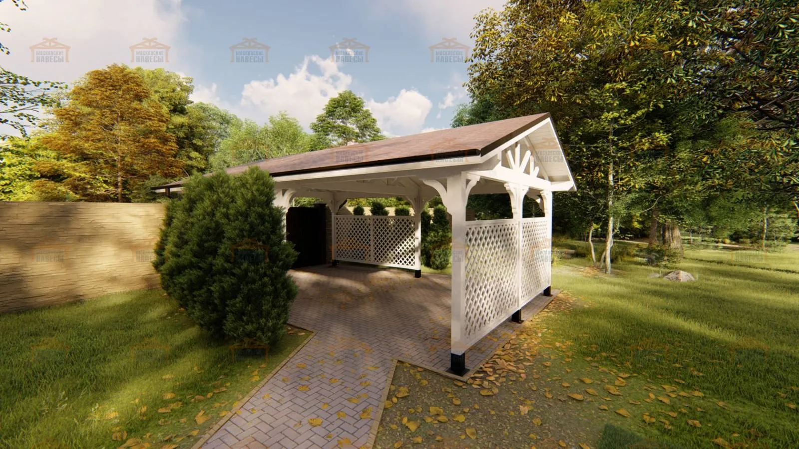 | Стойки (столбы навеса) | Массив бруса сечением 140×140 мм Примечание: возможно естественное растрескивание, которое никак не влияет на надежность. Во избежание этого необходимо использовать клееный брус | Массив бруса сечением 140×140 мм Примечание: возможно естественное растрескивание, которое никак не влияет на надежность. Во избежание этого необходимо использовать клееный брус | Клееный брус 140×140 мм |