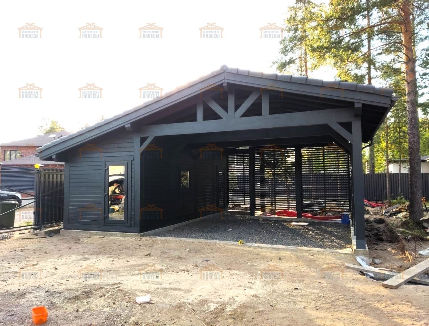 Пропитка конструкции навеса в цеху тонирующим декоративным составом класса Pinotex по выбранной Вами палитре