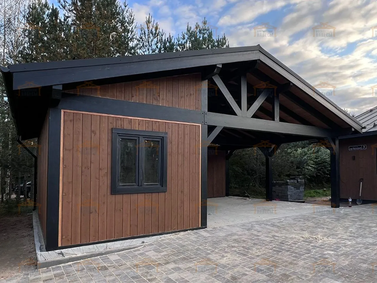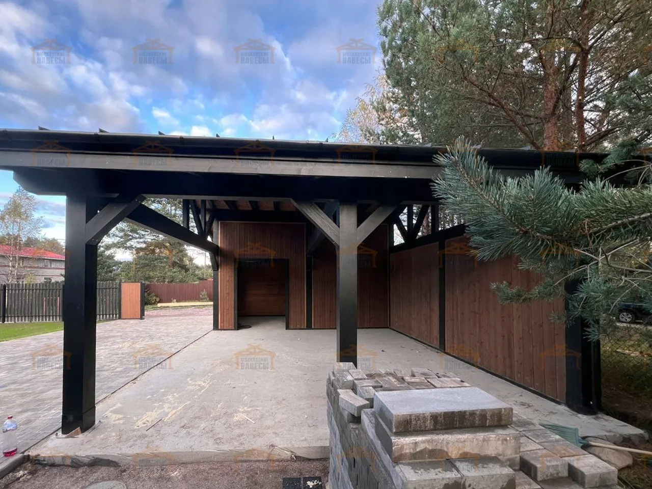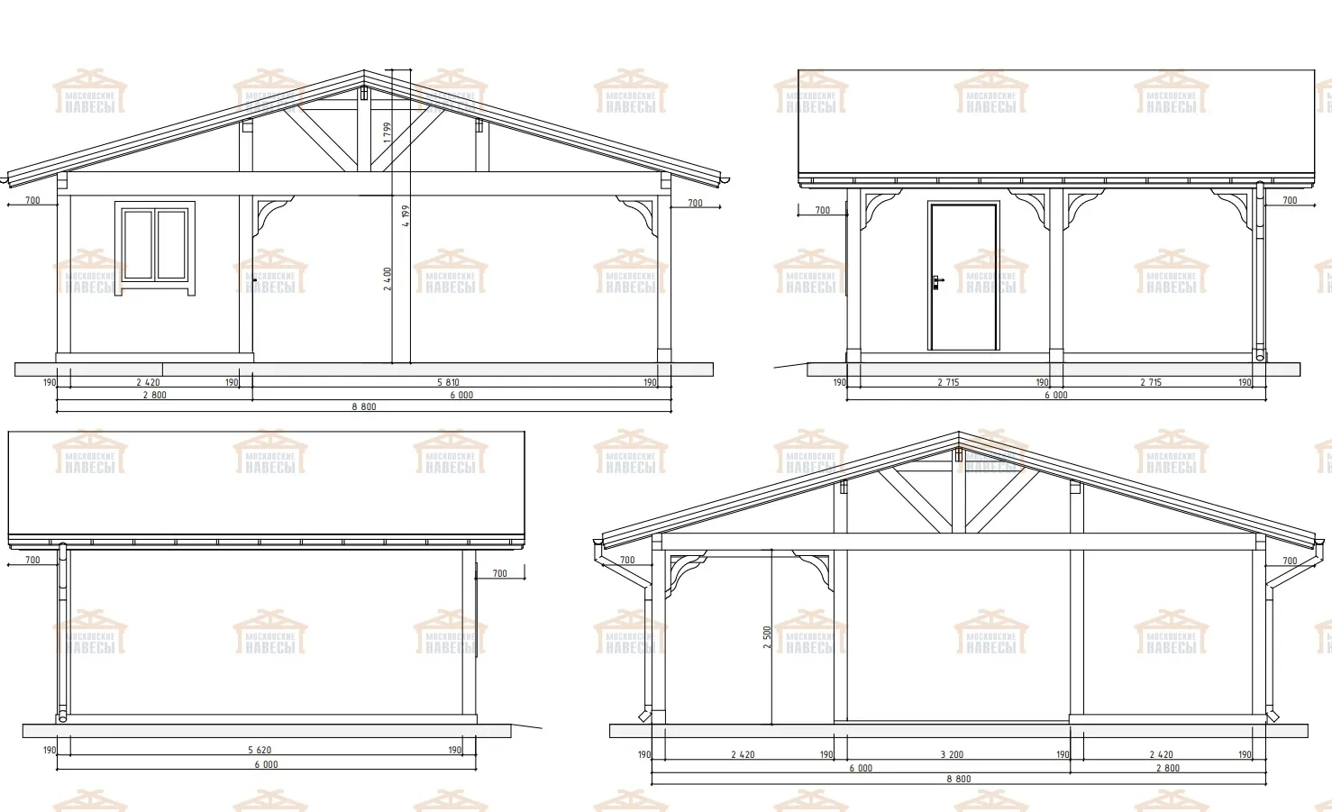 | Стойки (столбы навеса) | Клееный брус 190×190 мм |