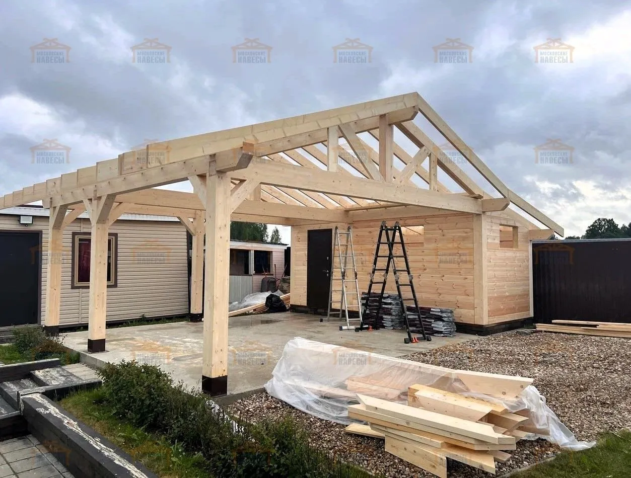 | Стойки (столбы навеса) | Клееный брус 190×190 мм |