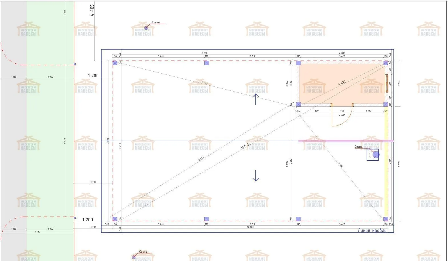 Размер: 7×12 м Площадь (по стойкам): 84 м² Срок производства: 60 день Срок монтажа: 25 дня