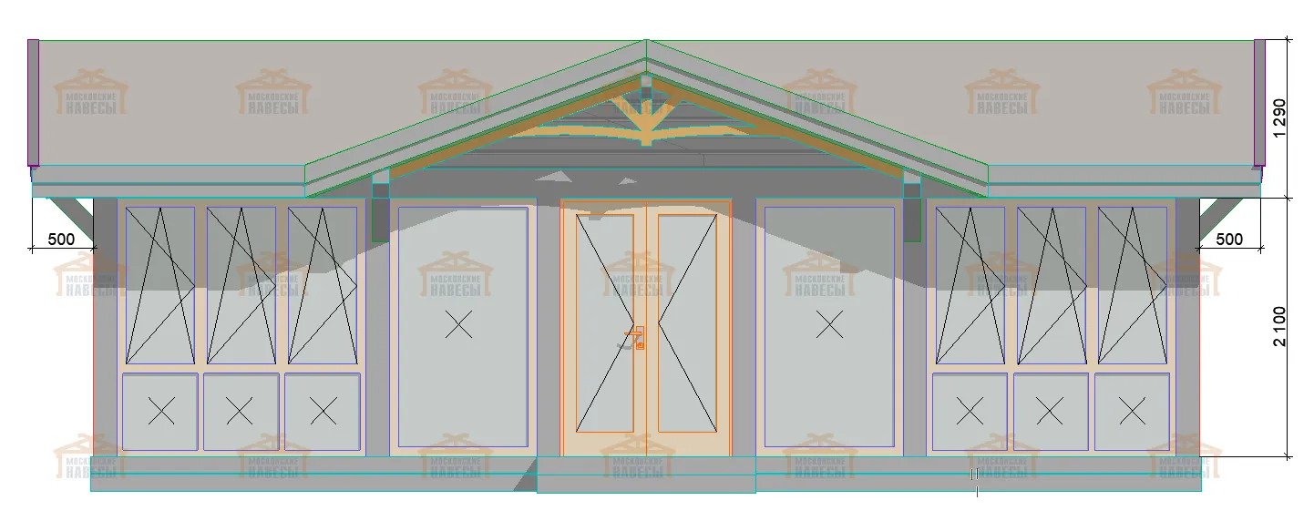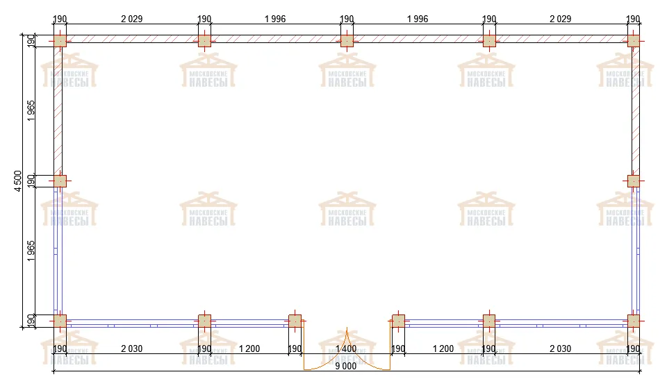 Размер: 4.5×9 м Площадь (по стойкам): 40.5 м² Срок производства: 60 день Срок монтажа: 15 дня