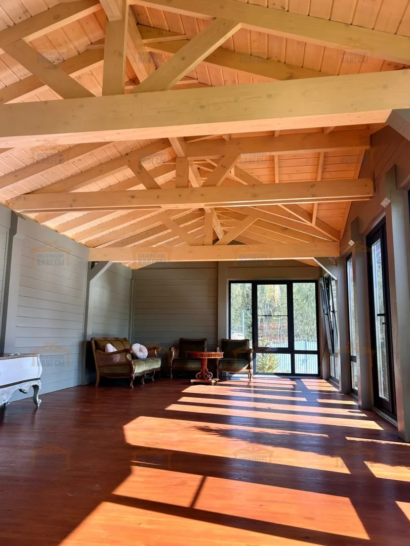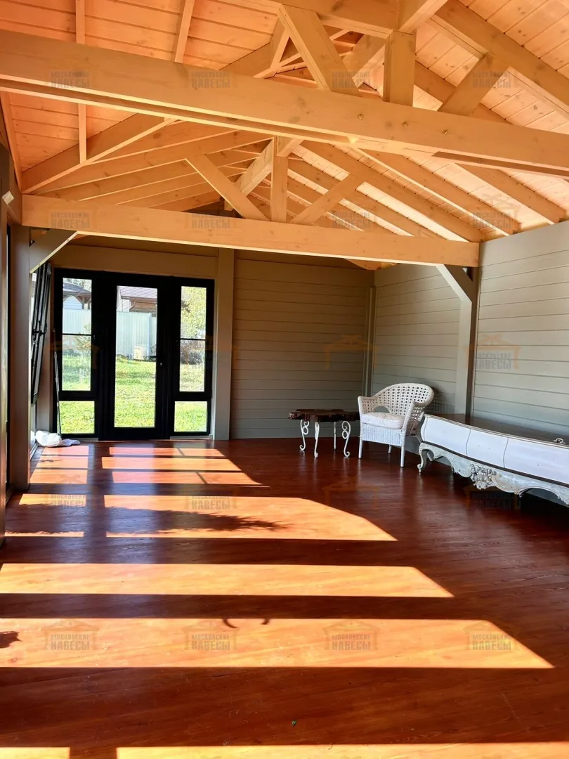 Пропитка конструкции навеса в цеху тонирующим декоративным составом класса Pinotex по выбранной Вами палитре