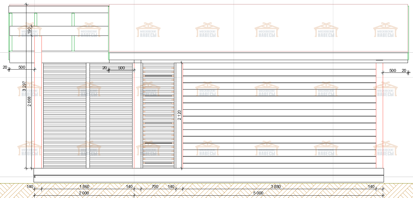 | Стойки (столбы навеса) | Клееный брус 140×140 мм |