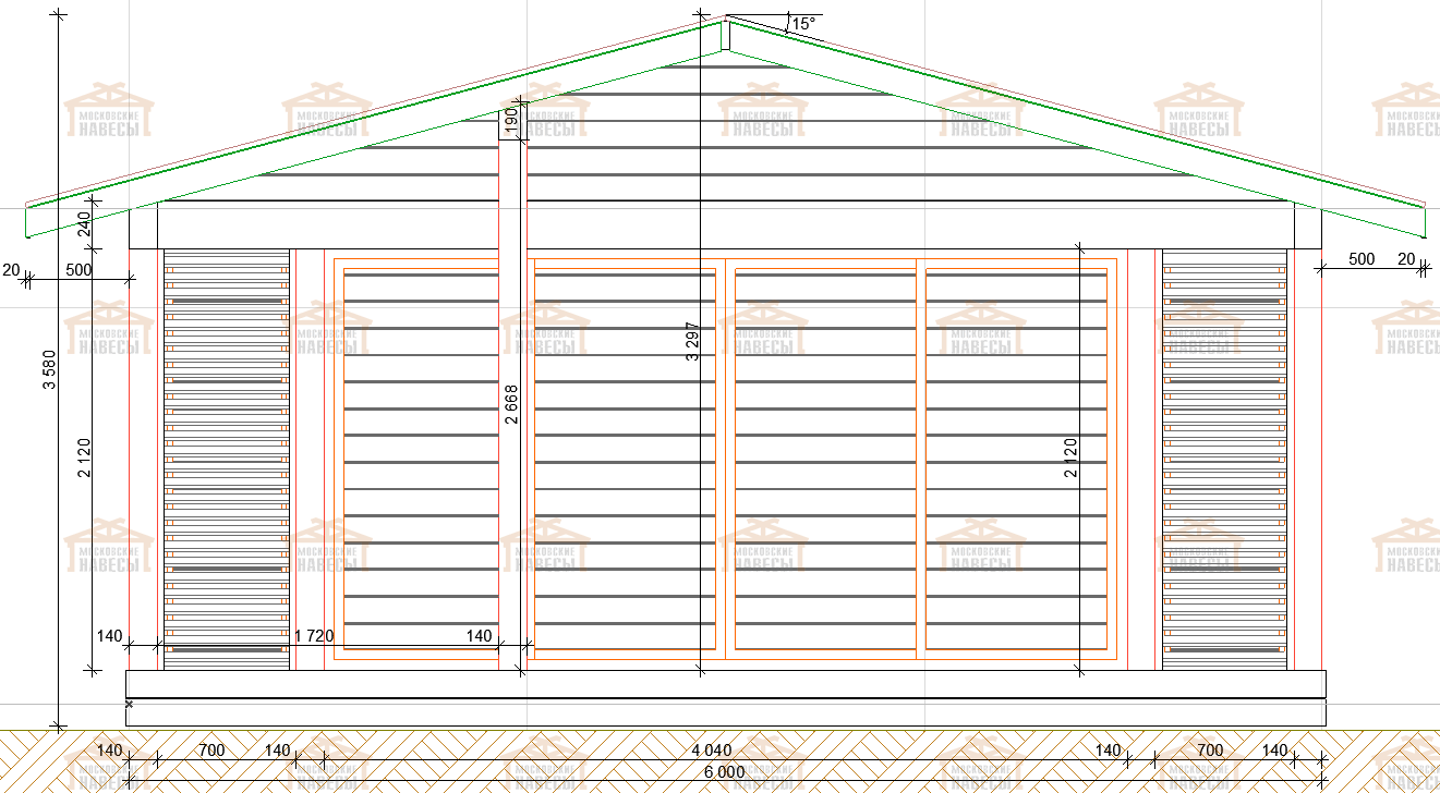 Размер: 7×6 м Площадь (по стойкам): 42 м² Срок производства: 48 день Срок монтажа: 8 дня