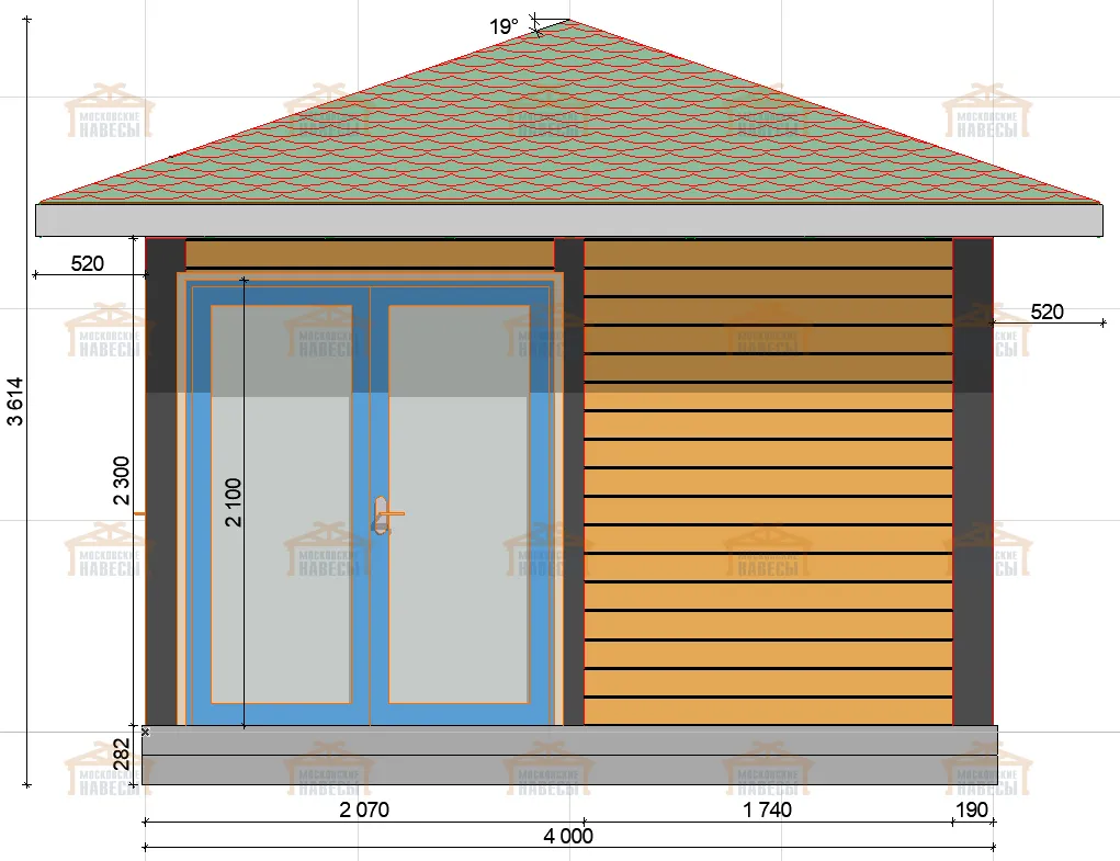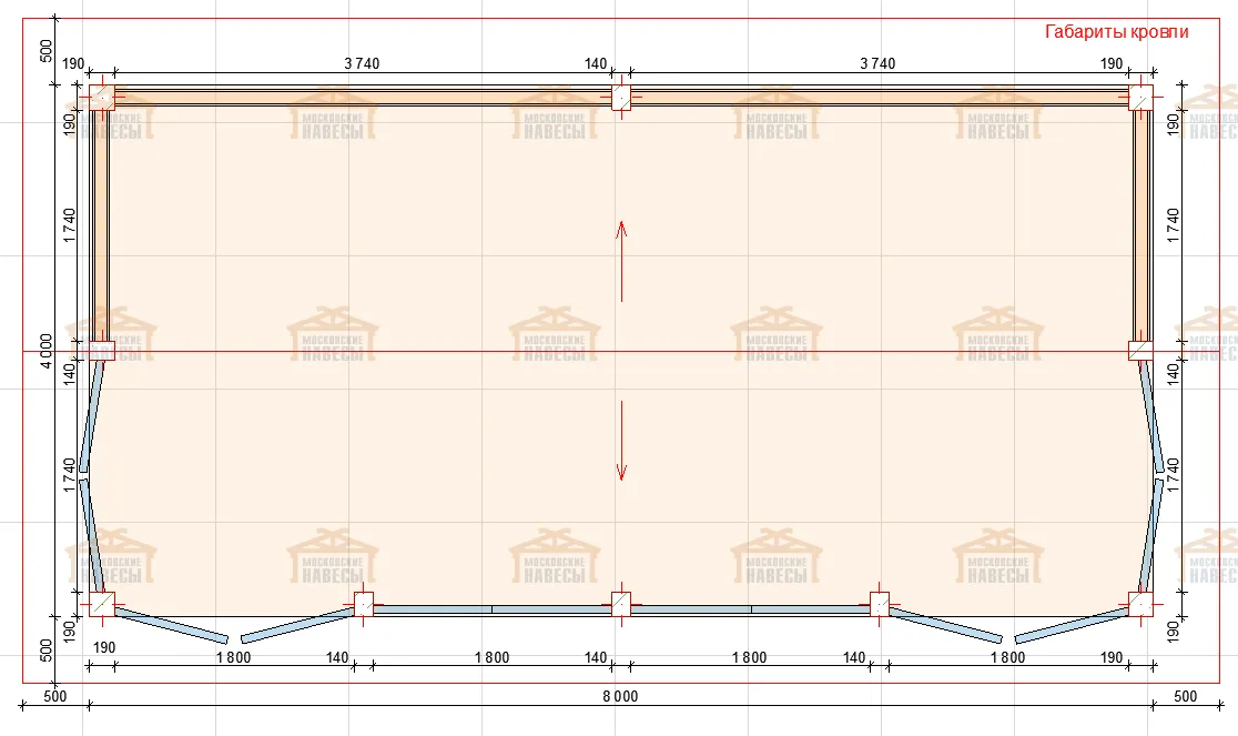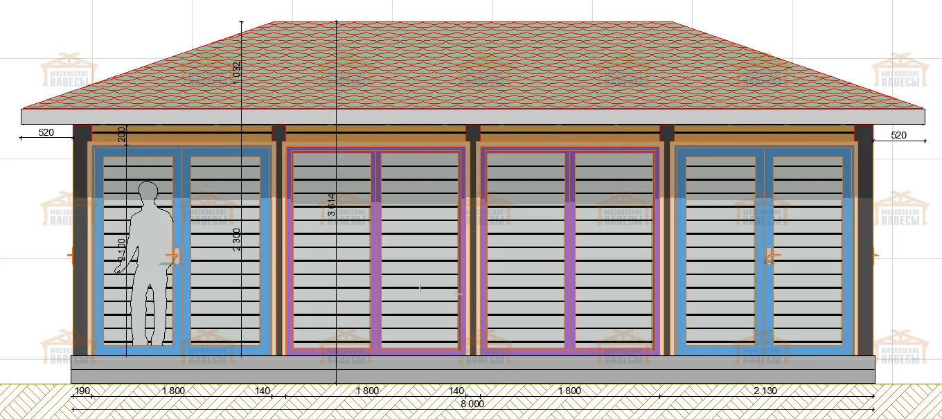 Размер: 4×8 м Площадь (по стойкам): 32 м² Срок производства: 45 день Срок монтажа: 8 дня